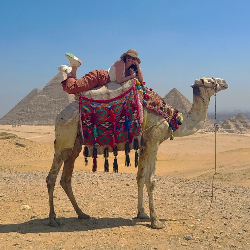 Sometimes effortless means savoring a sunset with champagne in hand. Sometimes it’s swinging onto a camel in Giza and making it look easy. For me, travel has always been about both — the polish and the play, the chic and the unexpected.