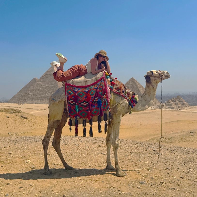 Sometimes it’s climbing onto a camel in Giza, laughing through the nerves, and letting the moment unfold.
